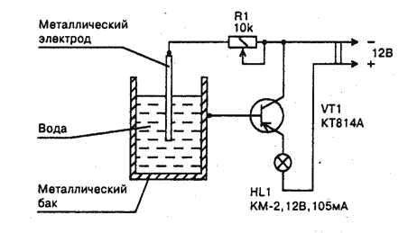 Рис. 10.3. Принципиальная схема сигнализатора уровня воды в металлической емкости